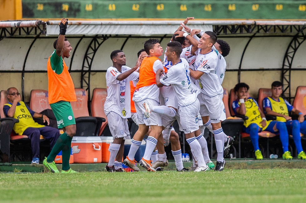 SP - COPA SÃO PAULO/RODADA - ESPORTES - Jogadores do São Bento comemoram gol em partida contra o São Caetano, válida pela segunda fase da Copa São Paulo de Futebol Júnior 2020, realizada no Estádio do Canindé, em São Paulo, na tarde deste domingo (12). O São Bento venceu por 2 a 0 e avançou à terceira fase. 12/01/2020 - Foto: VAN CAMPOS/THENEWS2/ESTADÃO CONTEÚDO