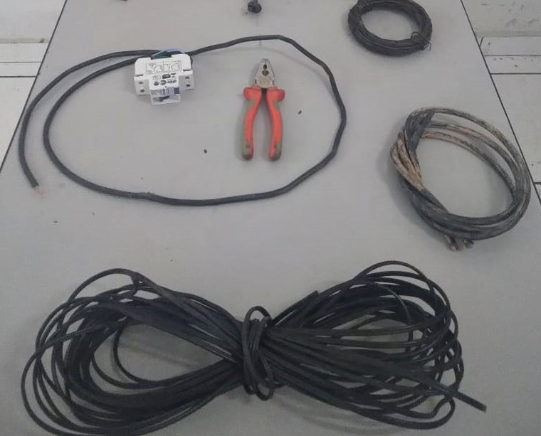 Em busca pessoal nada de ilícito foi localizado, porém, ao averiguar a sacola que o homem carregava foram localizados vários metros de fio, alicate e disjuntor, pertencentes à obra do BRT.