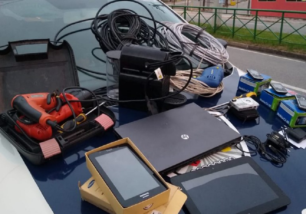 O suspeito, de 31 anos, foi abordado no momento em que retirava os equipamentos do local. Uma parte dos objetos já estava do lado de fora do depósito.