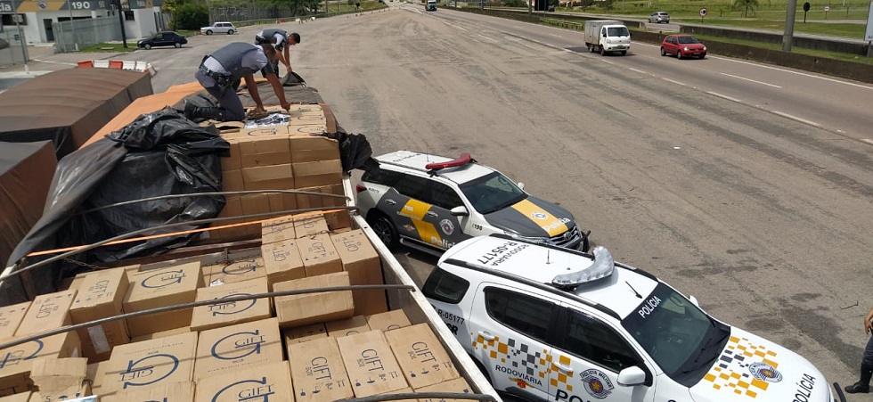 A Polícia Rodoviária aprendeu cerca de 400 mil maços de cigarros contrabandeados que eram transportados em uma carreta na rodovia Castelo Branco (SP-280), em Sorocaba. O flagrante ocorreu na manhã desta segunda-feira (24).