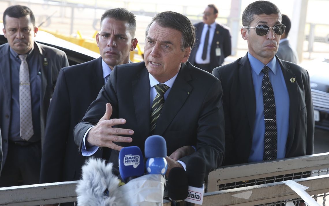 O presidente Jair Bolsonaro, cumprimenta populares e fala à imprensa no Palácio da Alvorada