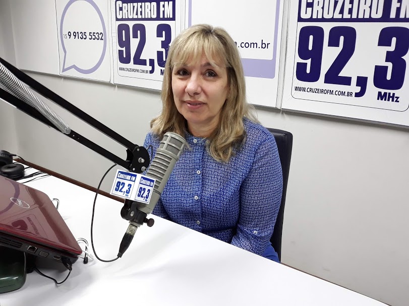 A delegada titular da Delegacia de Defesa da Mulher de Sorocaba, Veraly de Fatima Bramante Ferraz, na bancada do Jornal da Cruzeiro
