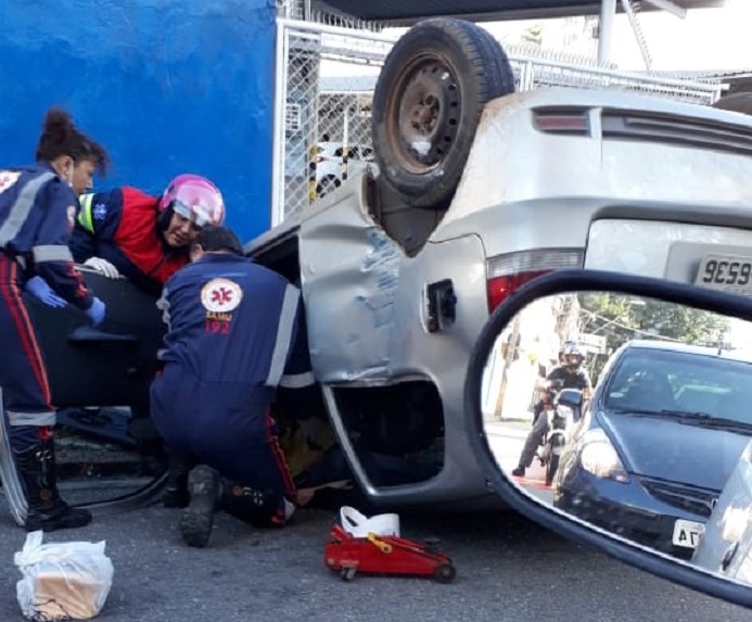 Um carro capotou na rua Souza Pereira, no Centro de Sorocaba, na manhã desta segunda-feira (9). A motorista, de 42 anos, ficou ferida.