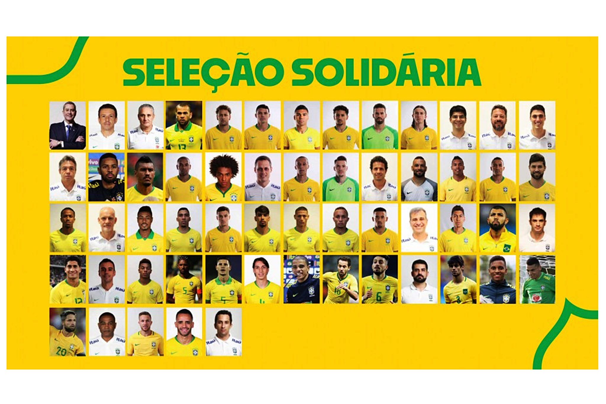 “O futebol está na vida dos brasileiros. Muito importante contribuirmos também nesse momento tão difícil. Esta é uma mobilização conjunta da CBF, dos atletas e da comissão técnica que levará esperança a milhares de famílias”, afirmou o presidente da CBF, Rogério Caboclo, em comunicado oficial publicado no site da entidade.
