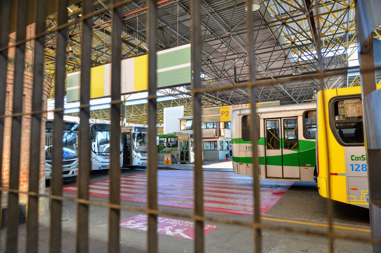Muitos veículos permanecem estacionados dentro dos terminais de ônibus da cidade, sem motoristas.