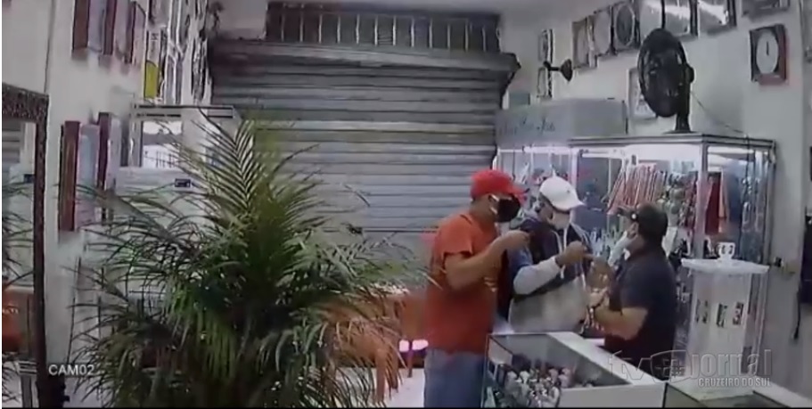 O assalto ocorreu em uma relojoaria localizada na região central na cidade. Dois homens com máscaras iguais às usadas como proteção contra o coronavírus invadiram o estabelecimento, que funcionava à meia porta, e sacaram as armas.