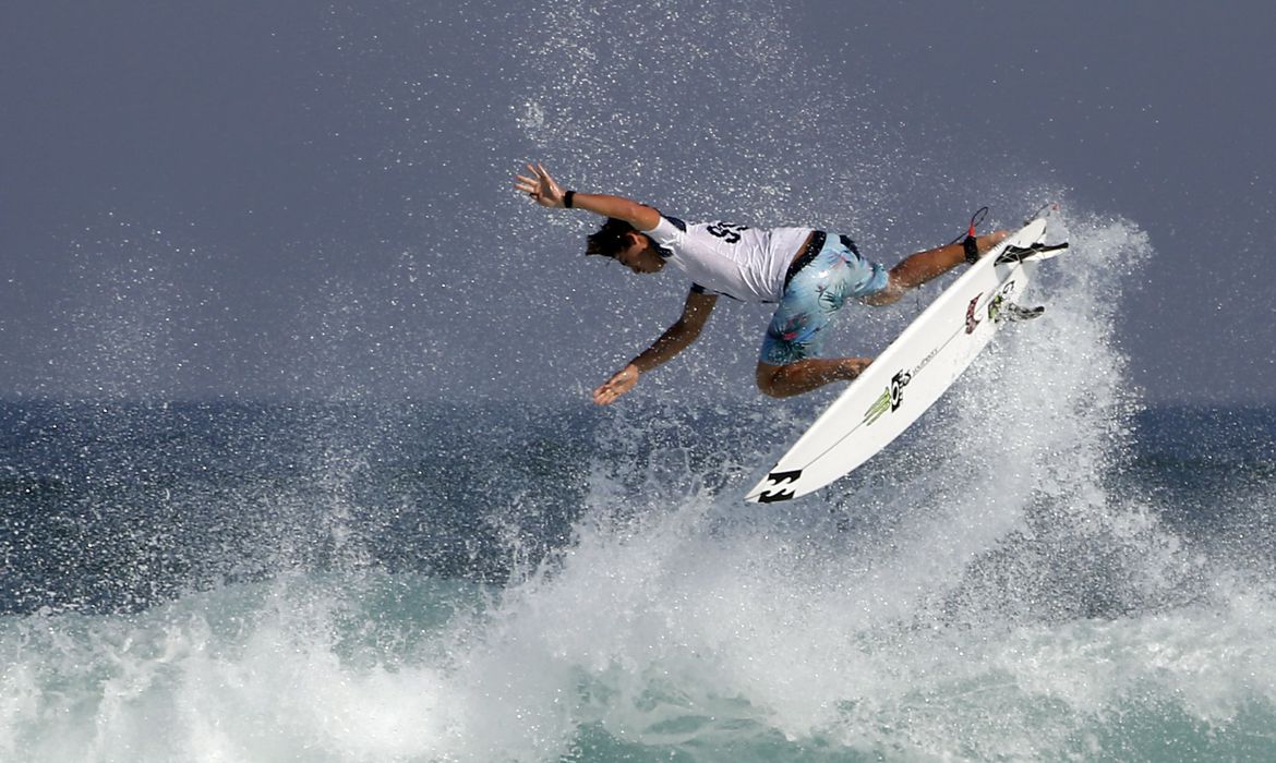 O surfista norte-americano Griffin Colapinto compete na etapa brasileira da Liga Mundial de Surfe, na praia de Itaúna, em Saquarema, Rio de Janeiro.