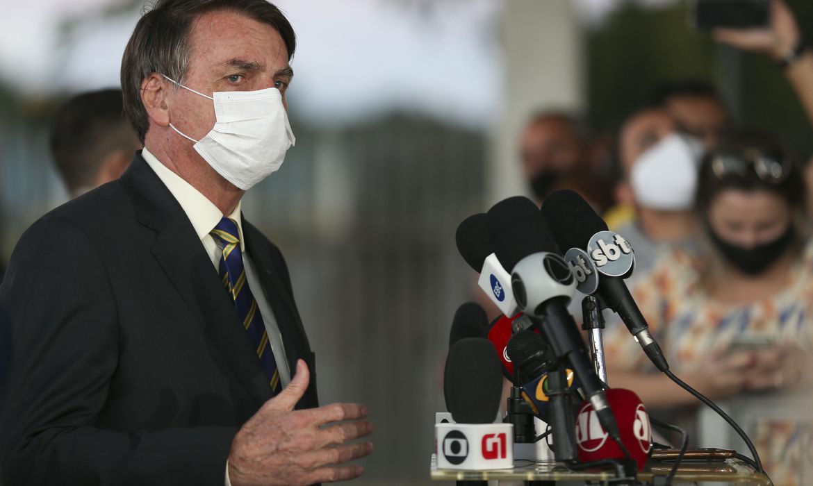 O presidente Jair Bolsonaro fala à imprensa no Palácio da Alvorada