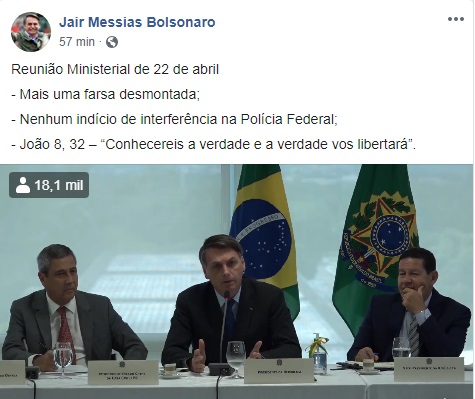 O presidente Jair Bolsonaro manifestou-se nas redes sociais após a divulgação do vídeo da reunião ministerial do dia 22 de abril.