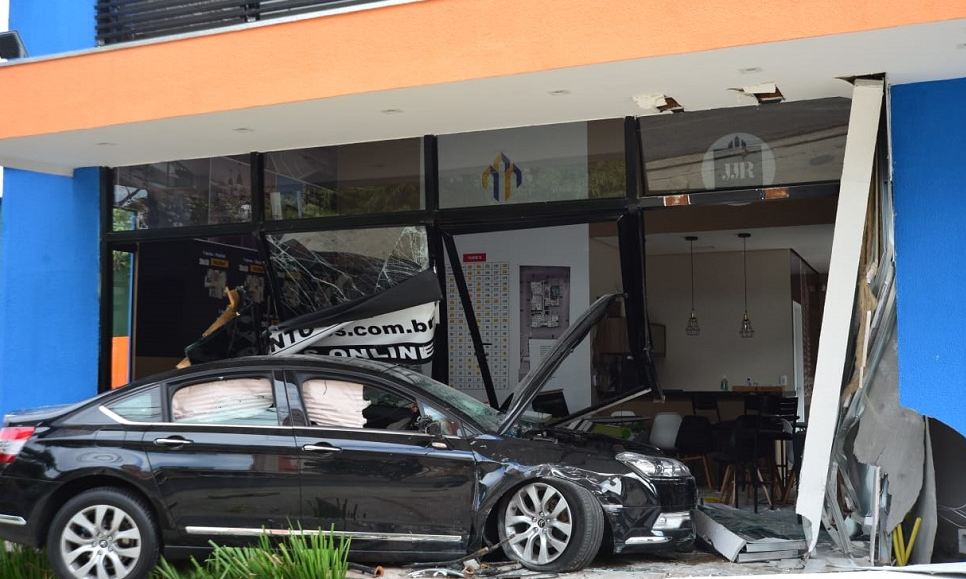 Uma mulher de 62 anos de idade bateu o carro que dirigia num estande de vendas na avenida São Paulo, em Sorocaba, na manhã desta segunda-feira (25). Ela não se feriu.