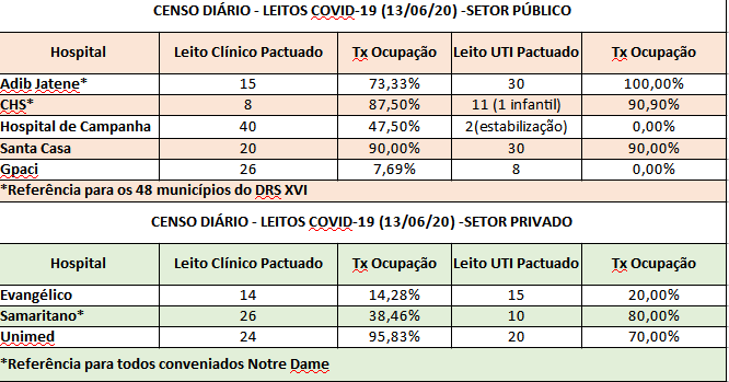 A Prefeitura também divulgou um censo com a taxa de ocupação de leitos Covid-19 no setor público e privado na cidade. Veja abaixo: