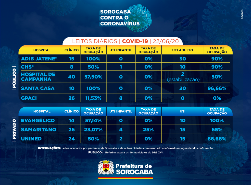 A prefeitura também divulgou os dados da ocupação de leitos nas UTIs dos hospitais públicos e privados