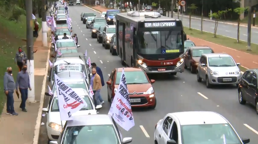 Professores da rede pública estadual de São Paulo fizeram uma carreata na manhã de hoje (29) contra a volta às aulas presenciais, que, segundo o governo paulista, deve ocorrer a partir do dia 8 de setembro.