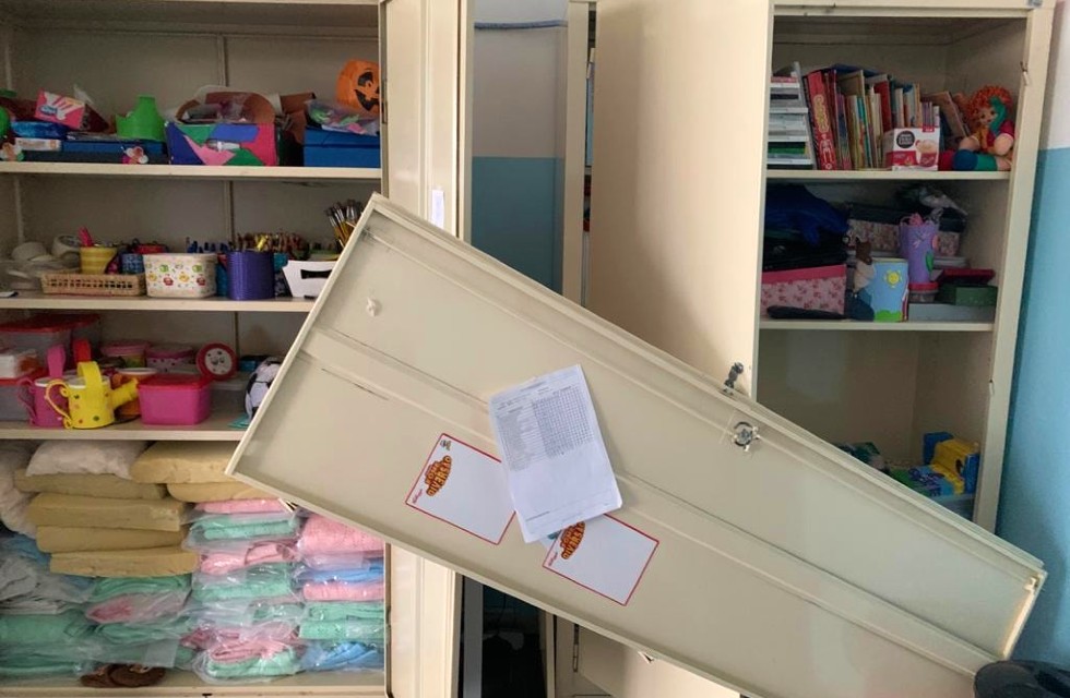 Da cozinha, foram furtadas um microondas, uma cafeteira e aparelhos eletrônicos. A direção da unidade informou que os suspeitos levaram ainda parte da fiação de energia elétrica do prédio.