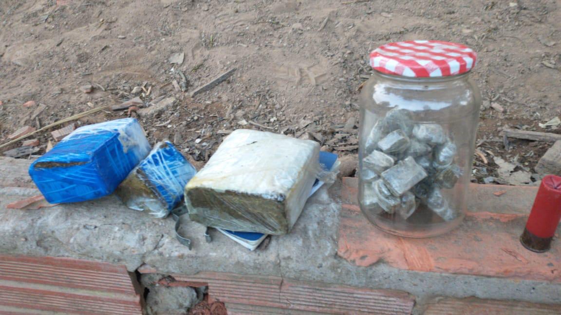 Na casa, durante vistoria, os policiais encontraram no quarto, embaixo do colchão de um berço, três tabletes de maconha e vinte e sete porções da mesma droga, totalizando 628,2 gramas, além de um cartucho de munição calibre 12. Questionado sobre o material encontrado, ele confessou que a droga era sua.
