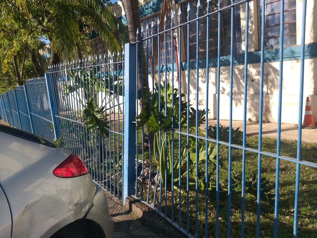 Ladrão de carro em fuga bate em veículo e em grade de escola em Sorocaba