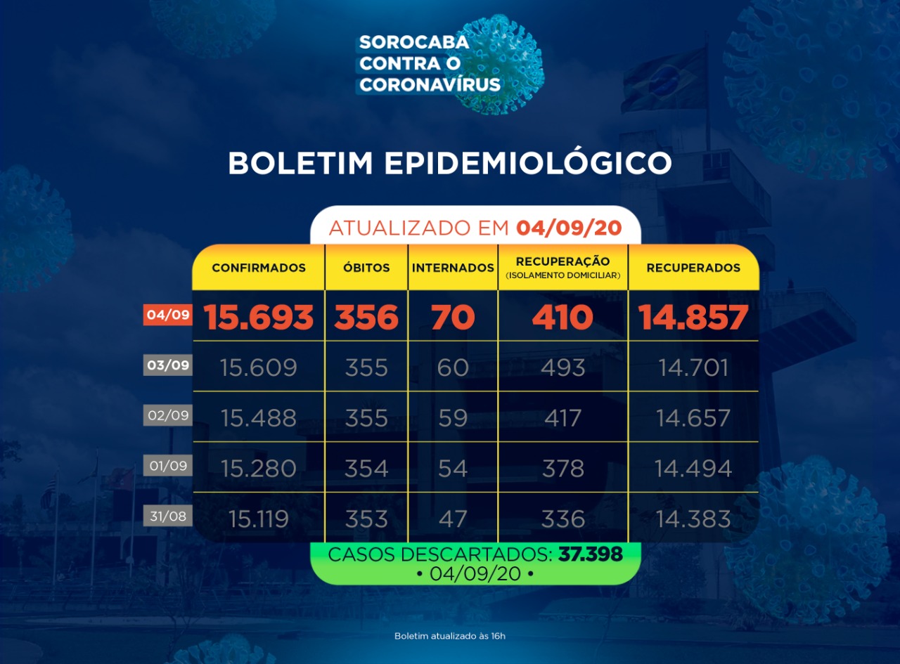 A Prefeitura de Sorocaba, por meio da Secretaria da Saúde (SES), registrou hoje (4) o total de 14.857 recuperados da covid-19.
