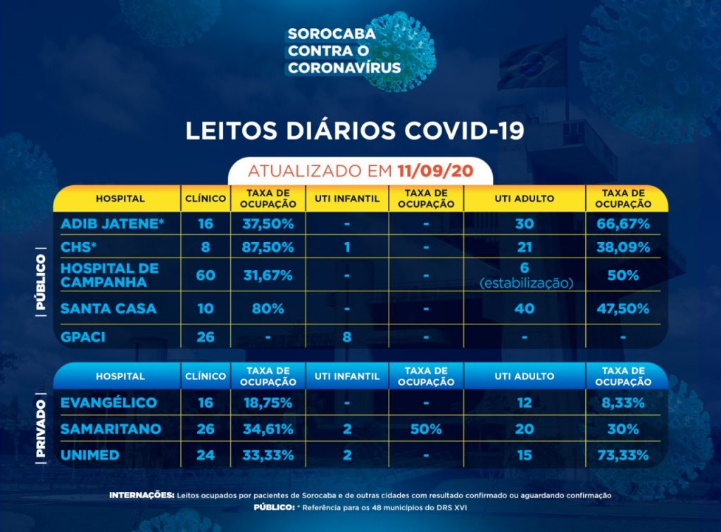 Na sequência vem a UTI do Conjunto Hospitalar de Sorocaba (CHS) com 38,09% dos 21 leitos ocupados, o Adib Jatene tem 66,67% e o Hospital da Unimed tem hoje a maior ocupação de UTI entre os hospitais da cidade: 73,33%.