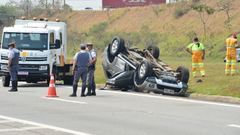 Segundo a Viaoeste, concessionária que administra o trecho da rodovia, a colisão teria sido entre um carro e um caminhão. O veículo capotou e ficou com as rodas para cima.