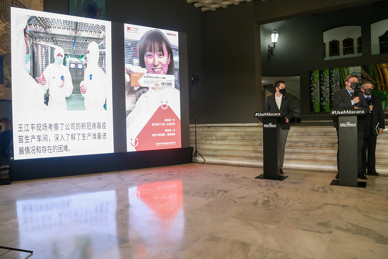 Também participou da coletiva o executivo chinês Xing Han, que é representante do laboratório Sinovac na América do Sul.