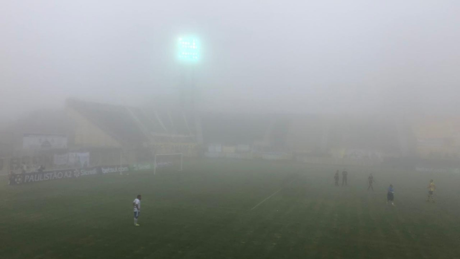 Depois da forte neblina que atingiu o estádio 1.° de Maio, a partida entre São Bernardo x São Bento foi suspensa aos 29 minutos do 2.° tempo, na tarde desta terça-feira (29), a Federação Paulista de Futebol (FPF) confirmou há pouco que os 16 minutos finais sejam disputados nesta quarta-feira (30), princípio às 15h.