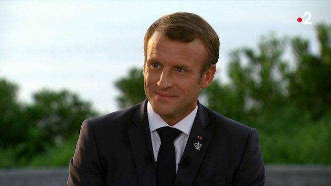 A TV grab made on August 26, 2019 shows French president Emmanuel Macron during an interview broadcast on French TV France 2 in Biarritz, on August 26, 2019. (Photo by - / FRANCE TELEVISIONS / AFP) / RESTRICTED TO EDITORIAL USE - MANDATORY CREDIT "AFP PHOTO/ FRANCE 2" - NO MARKETING NO ADVERTISING CAMPAIGNS - DISTRIBUTED AS A SERVICE TO CLIENTS
