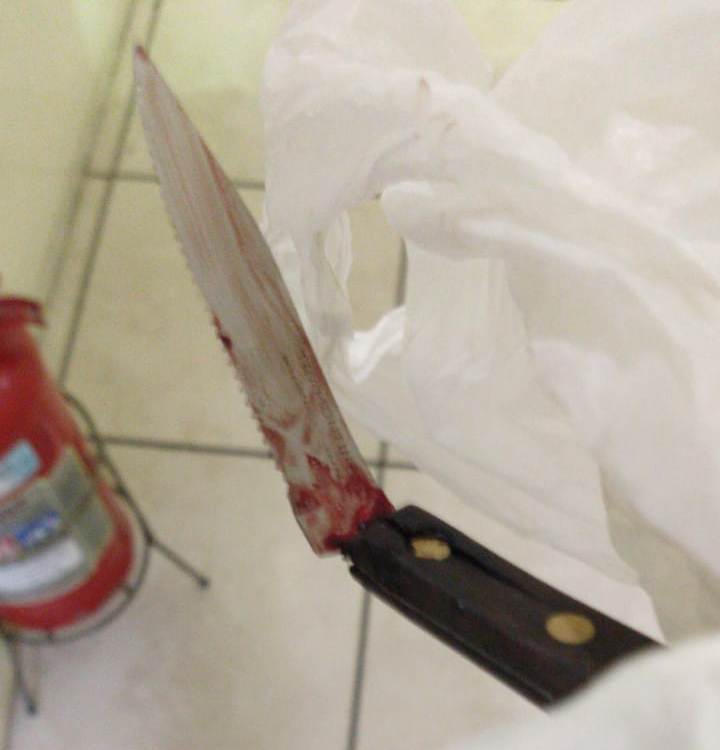 Mesmo baleado, o indivíduo ainda perfurou o próprio peito com a faca.