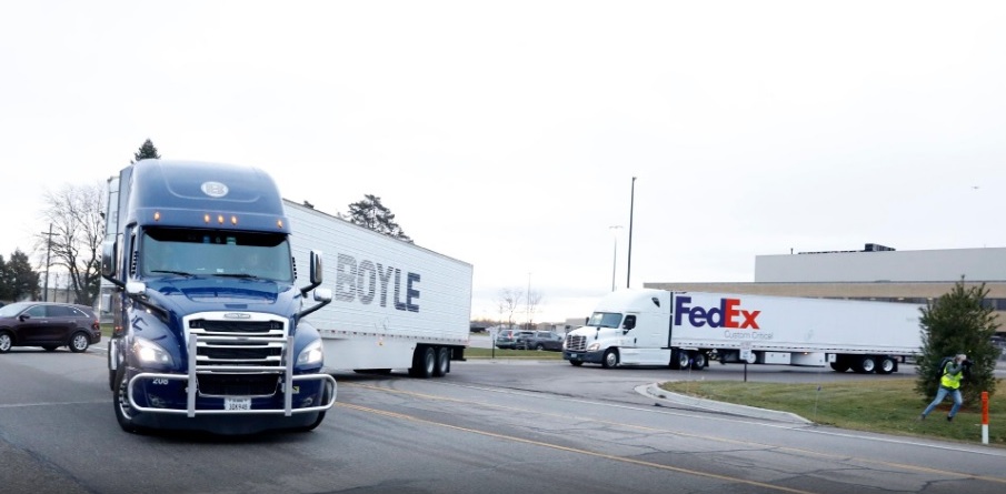 Funcionários aplaudiram enquanto as primeiras caixas eram transferidas para os caminhões que as esperavam. O momento tão aguardado chega quando as infecções e mortes por covid-19 estão aumentando nos Estados Unidos.