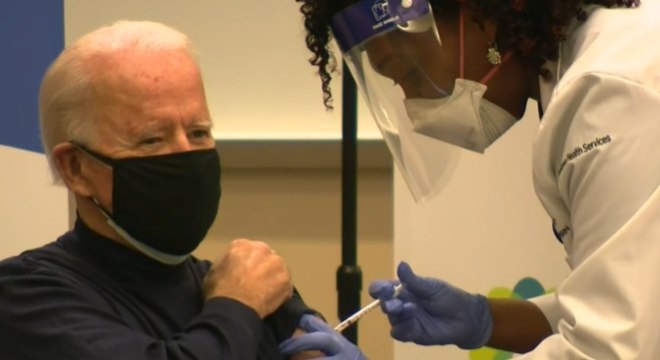 O presidente eleito dos Estados Unidos, Joe Biden, tomou a vacina contra a Covid-19 nesta segunda-feira (21).