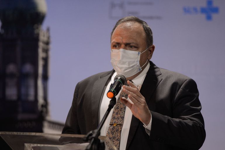 O ministro da Saúde, Eduardo Pazuello durante cerimônia de divulgação do edital de licitação do Complexo Industrial de Biotecnologia em Saúde-CIBS, na Fiocruz.