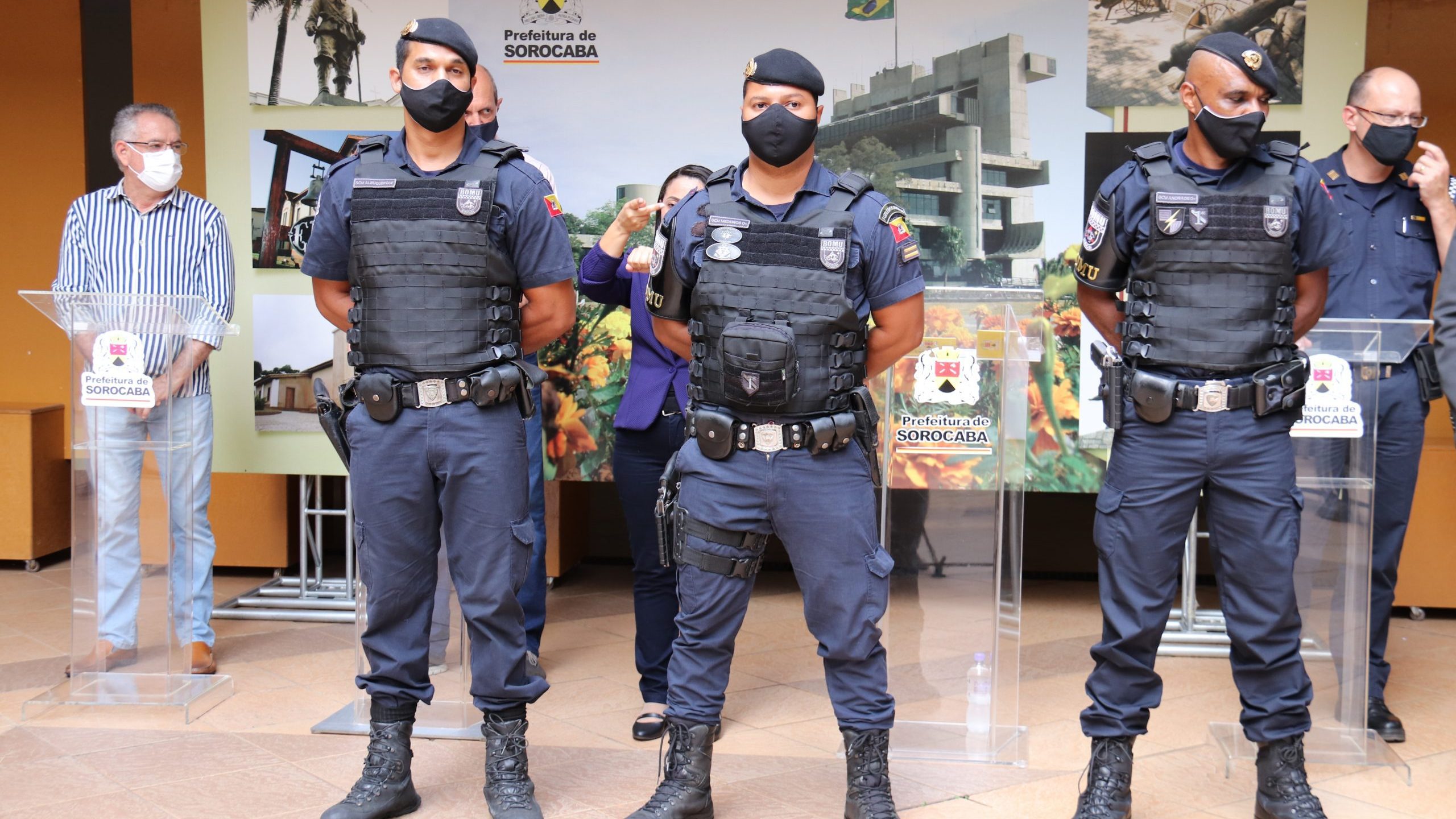 Na cerimônia de entrega de novas armas à Guarda Civil Municipal de Sorocaba (GCM), a prefeitura também concedeu troféu de honra ao mérito aos guardas Albuquerque, Andrade e Medeiros, que resgataram uma senhora, com mobilidade reduzida, e o marido dela, durante as fortes chuvas na região central de Sorocaba.