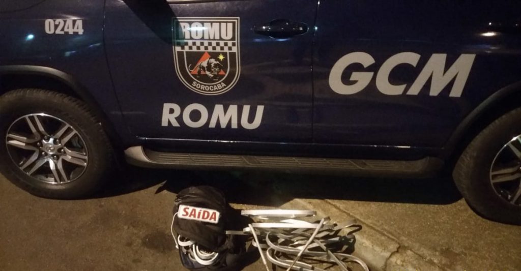 Uma equipe da Ronda Ostensiva Municipal (Romu), da GCM, foi direcionada ao local e encontrou o homem no interior da unidade, com uma mochila nas costas e algumas hastes nas mãos. Ao perceber a aproximação da Guarda, o mesmo jogou a mochila e os materiais no chão e tentou fugir, mas foi alcançado.