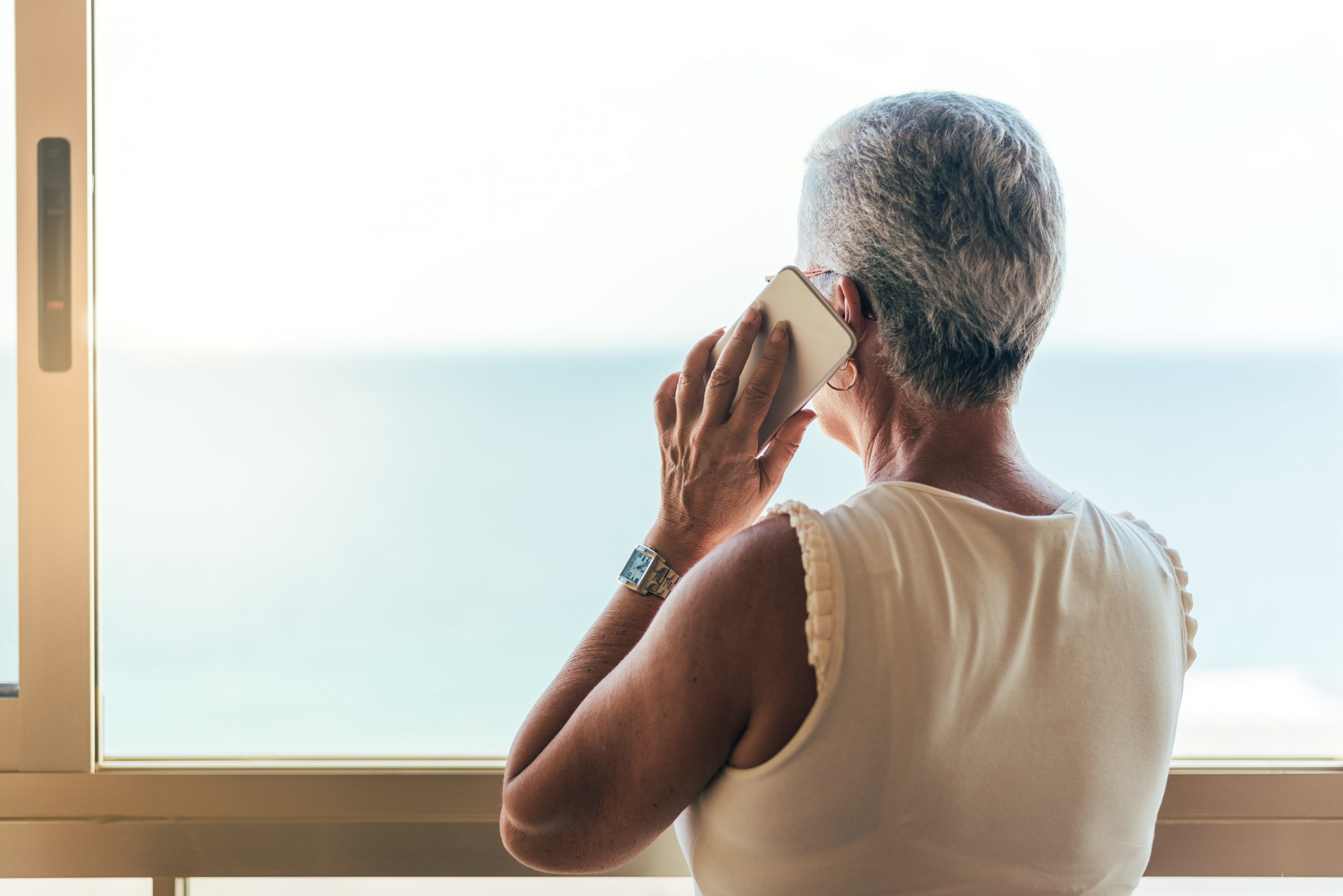 Elderly woman on the mobile phone at home