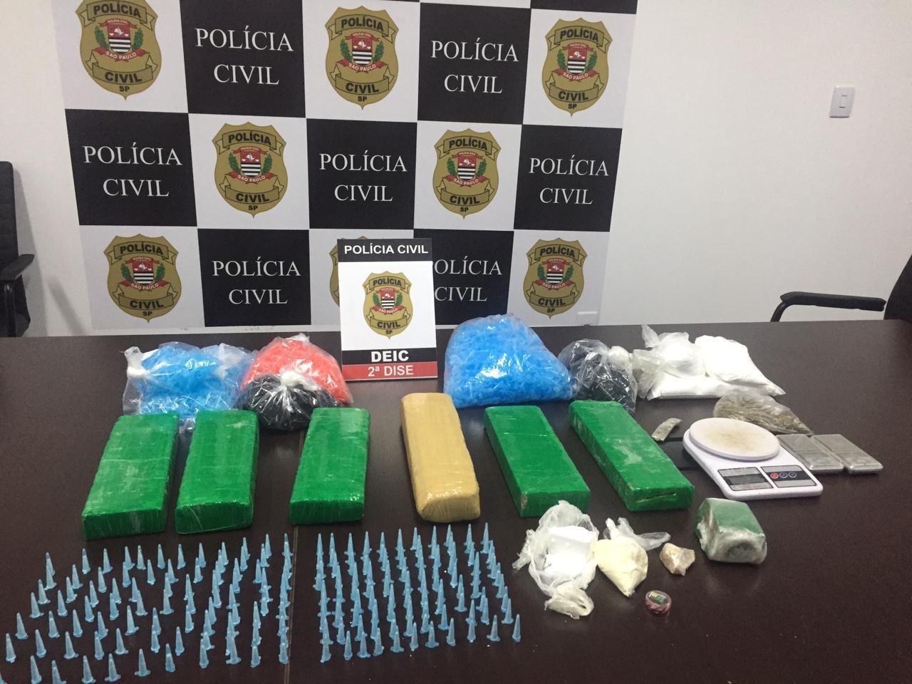 Os policiais civis da Deic apreenderam, no total, 187 porções de cocaína, totalizando 2,2 kg e mais 6,25 kg de maconha.