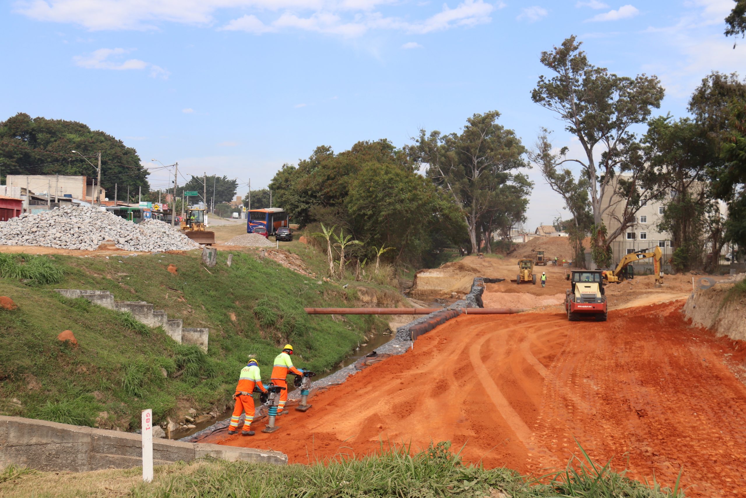 No local, está sendo feita a terraplanagem, com os recortes de solo e de preparação dos trajetos das pistas, bem como a contenção das margens do córrego. Adequações foram feitas para agilizar a obra, evitar novas desapropriações e minimizar os impactos para a população dos arredores, durante as obras. “Constatou-se, agora, que foram executados 10% do total das obras. Há alguns meses, não estávamos nem na metade disso e elas estão avançando”, pontuou a coordenadora da UEP.