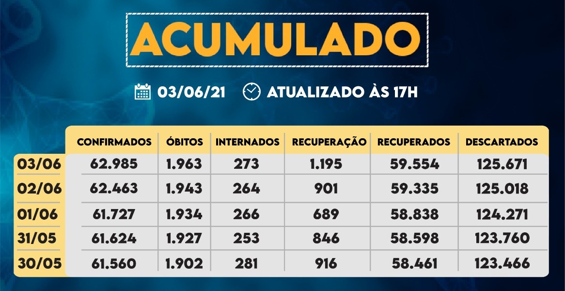 A cidade registrou nesta quinta-feira 522 novos casos da Covid-19, além de 219 recuperados e 20 óbitos, estes ocorridos desde o dia 1 de março, mas informados pelos hospitais à Vigilância Epidemiológica e computados apenas no dia de hoje (3). Do total de confirmados, 273 estão internados (148 em UTI) e o total de pessoas em recuperação (isolamento domiciliar) é 1.195.