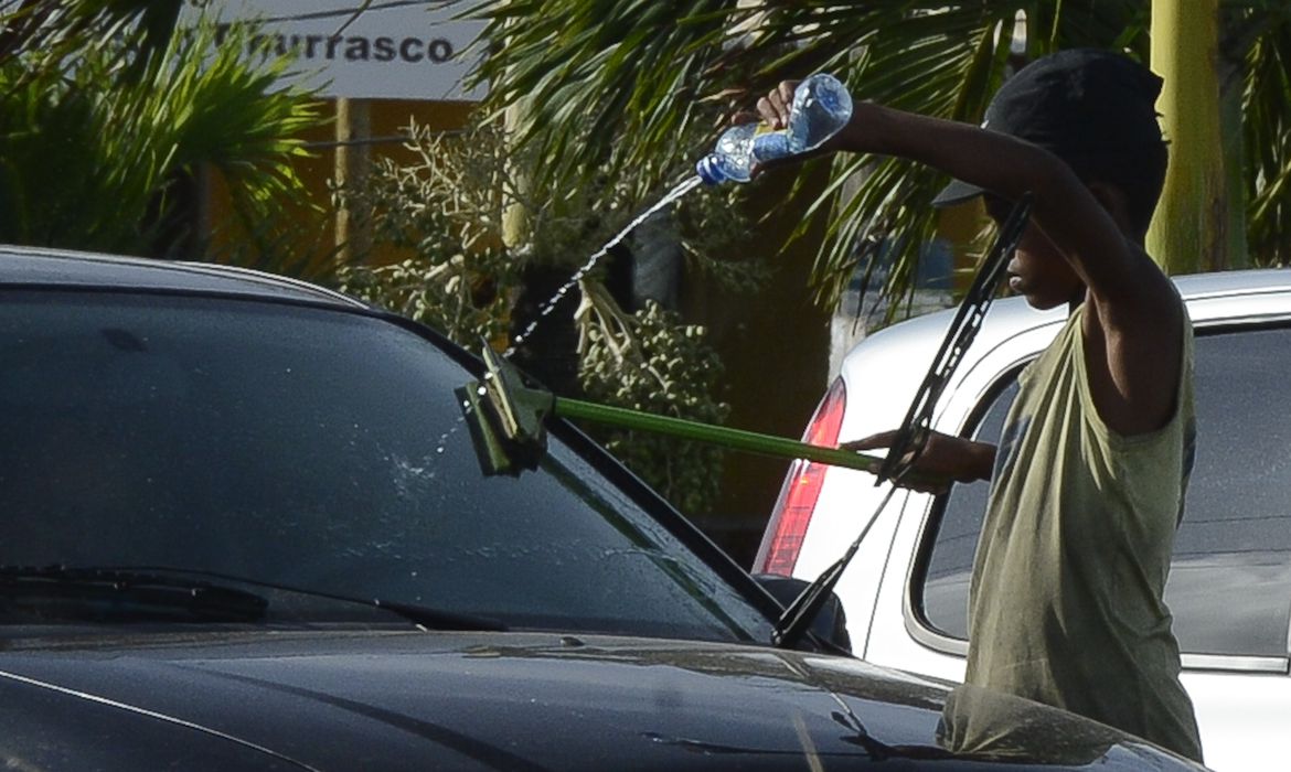 Natal - Nos estacionamentos à beira-mar, crianças trabalham lavando o vidro dos carros (Valter Campanato/Agência Brasil)