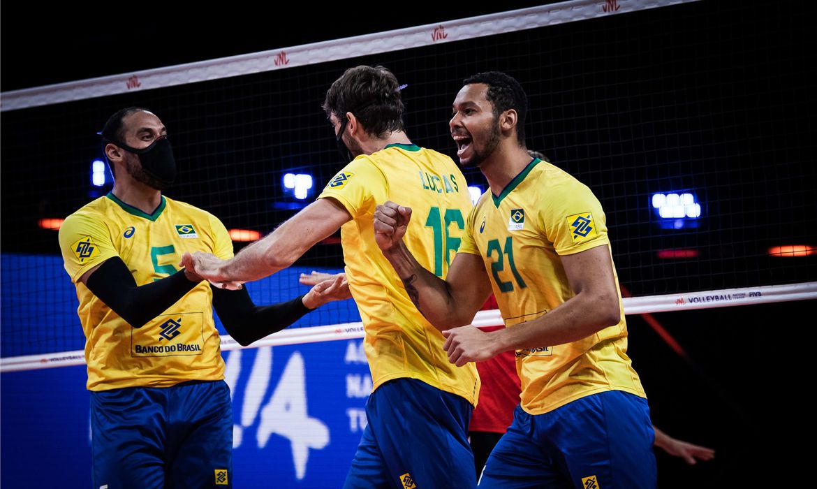 Na tarde desta terça-feira (22), a seleção brasileira masculina de vôlei venceu a Alemanha por 3 sets a 0 (25/21, 25/21 e 25/23), em Rimini, na Itália.