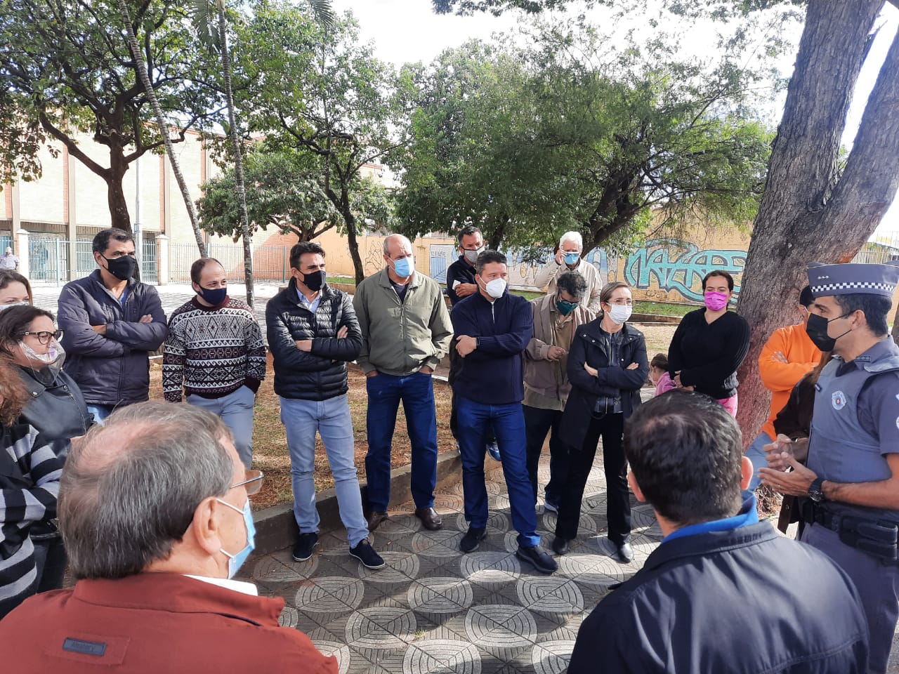 Estiveram na reunião, o Capitão Júlio Cesar Aranha, da Polícia Militar, e os secretários de Segurança Urbana, Cel. Vitor Maurício Gusmão, e de Mobilidade e Desenvolvimento Estratégico, Carlos Eduardo Paschoini.