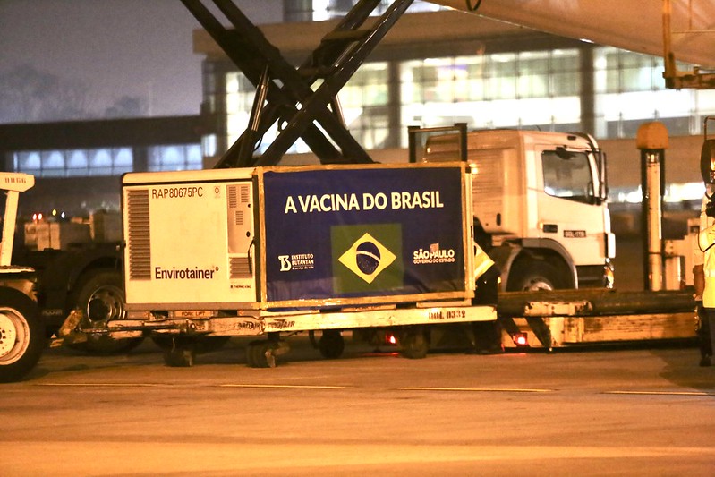 O lote, enviado pela biofarmacêutica chinesa Sinovac, chegou em um voo da companhia aérea Turkish Airlines por volta das 19h45 no Aeroporto Internacional de Guarulhos, região metropolitana de São Paulo. A aeronave saiu de Pequim (China) e fez escala em Istambul (Turquia), antes de chegar ao Brasil.