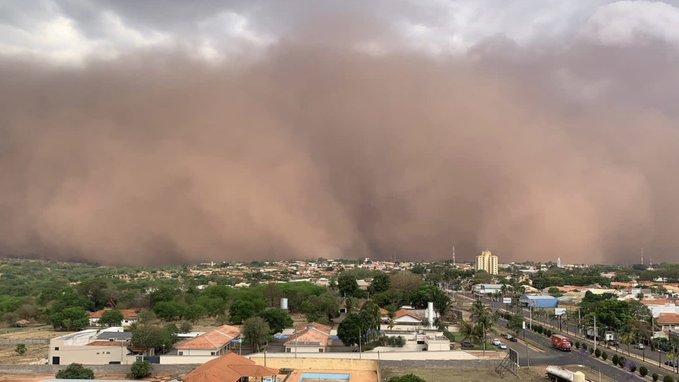 Nas redes sociais, há vários relatos e imagens da densa nuvem de poeira, que é bem parecida com a que avançou sobre Franca e Ribeirão Preto, ambas também no interior de São Paulo, no último domingo (26).