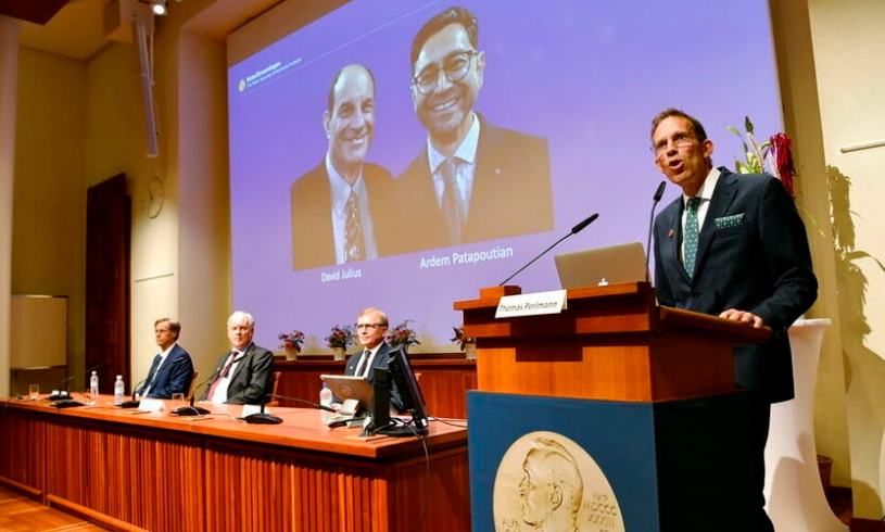 Os neurocientistas norte-americanos David Julius e Ardem Patapoutian foram os laureados com o Prêmio Nobel da Medicina, pelo seu trabalho na descoberta dos receptores da temperatura e do toque. O anúncio foi feito pelo Comitê Nobel, em Estocolmo.