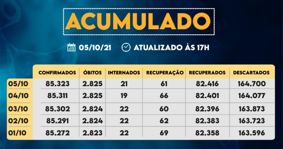 A cidade apresentou queda do número de pessoas com suspeita de contaminação pelo coronavírus e que aguardam resultados de 257 para 185. Entre os suspeitos, seis estão internados em hospitais da cidade, sendo dois em UTI. Não há óbito em investigação. O número de descartados por resultados negativos da doença aumentou para 164.700.