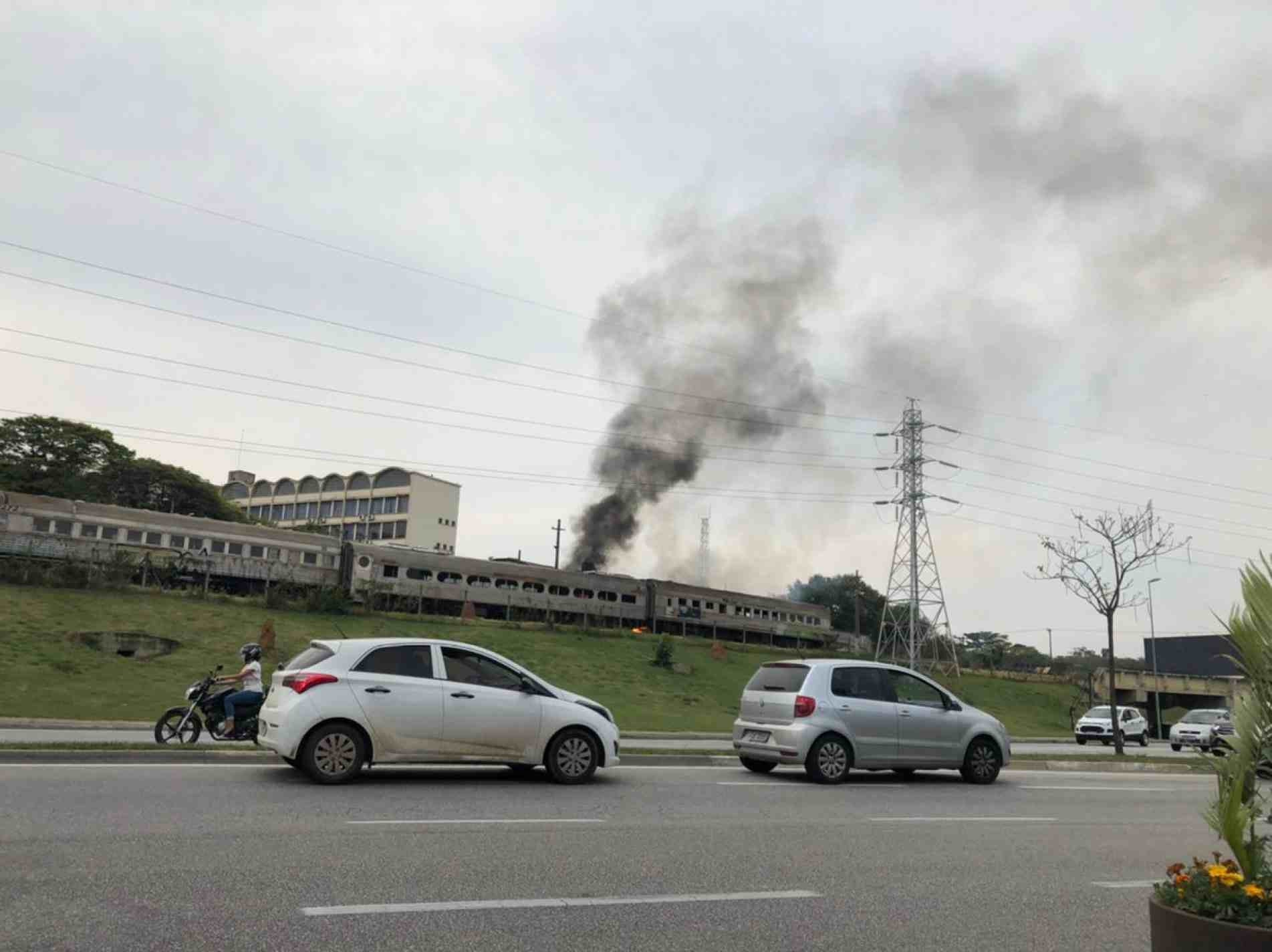 Uma fumaça preta invadiu as pistas da avenida Dom Aguirre, em Sorocaba, na tarde desta quinta-feira (14), após o incêndio em um vagão de trem, estacionado na estação Paula Souza, no Centro da cidade.