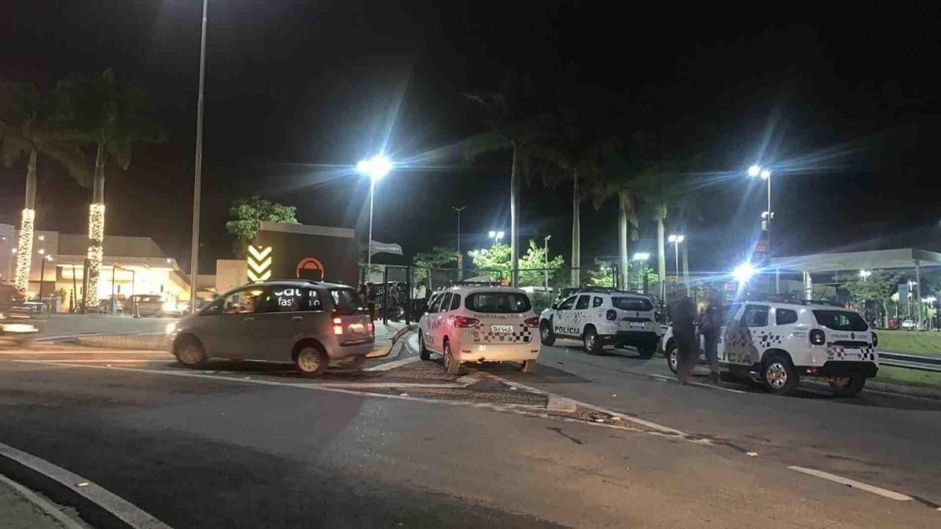 O grupo, formado por seis a dez criminosos, teve como alvo duas joalherias instaladas no centro de compras, justamente em um dos horários de maior movimento.