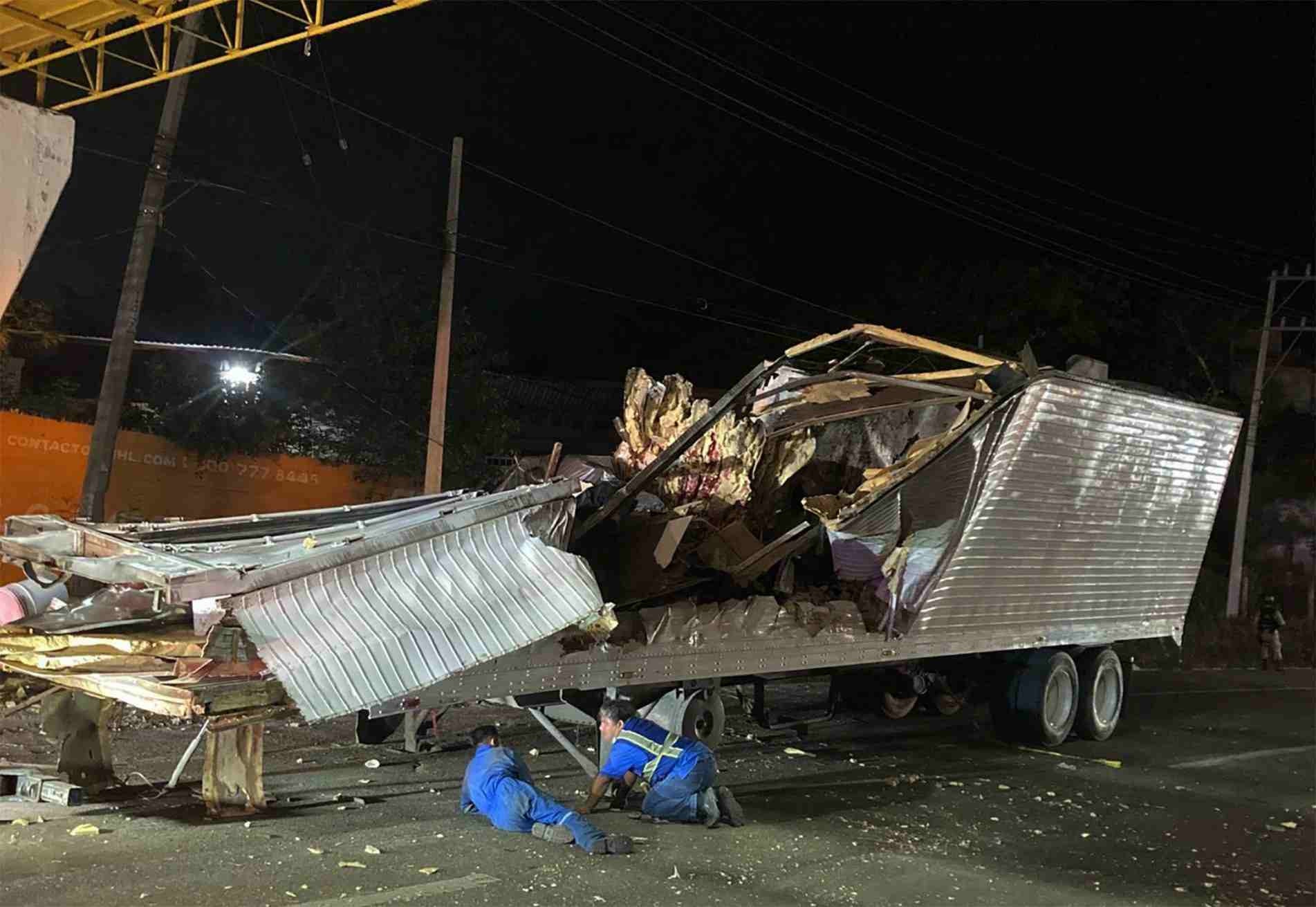 O acidente ocorreu por volta das 15h30 (17h30, horário de Brasília), quando o caminhão-baú, que aparentemente estava em alta velocidade, capotou em uma curva e atingiu a base de uma passarela em uma área próxima à capital da região de Chiapas, Tuxtla Gutiérrez. Com isso, a carreta que transportava passageiros se desprendeu e as vítimas se espalharam pela estrada.