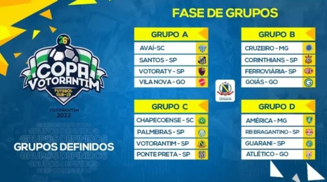 Na tarde de quarta-feira(15) no SESI de Votorantim foi realizado o sorteio dos grupos da 26ª Edição da Copa Votorantim de Futebol Sub-15, o evento acontece entre os dias 13 e 23 de janeiro e contará com 16 equipes. Confira detalhes do sorteio na reportagem de Nilson Duarte.