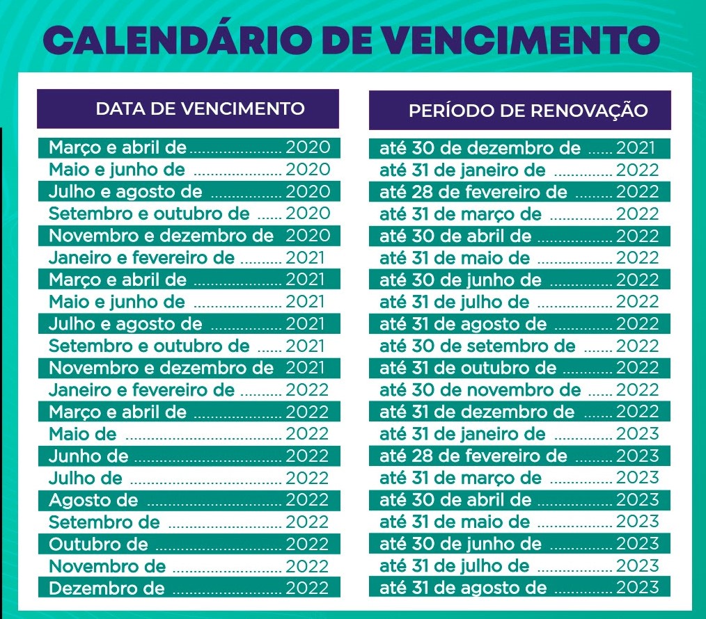 O período para a regularização é feito com base no mês de vencimento do documento. Por exemplo, CNHs vencidas entre maio e junho de 2020 deverão ser renovadas até 31 de janeiro de 2022.