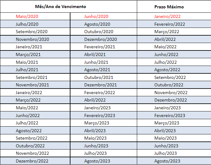 Calendário com os novos prazos de CNH: