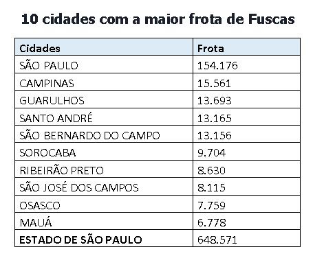 São Paulo, Campinas, Guarulhos, Santo André e São Bernardo do Campo ocupam os cinco primeiros lugares com a maior frota deste veículo. Atualmente, mais de 209 mil exemplares circulam nestas cidades, sendo que dez mil deles são itens de colecionadores, que circulam com placas pretas.